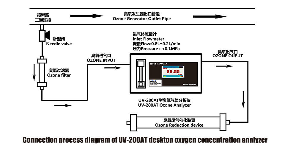 Detection principle: UV dual path absorption method, used for real-time detection of ozone generator outlet concentration or exhaust ozone concentration detection.